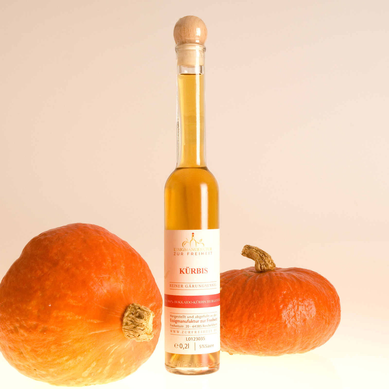 Reiner Gärungsessig, sorgfältig in zweifacher Gärung hergestellt aus Hokkaido-Kürbissen vom Landbau Bastine aus Dossenheim, 5% Säure